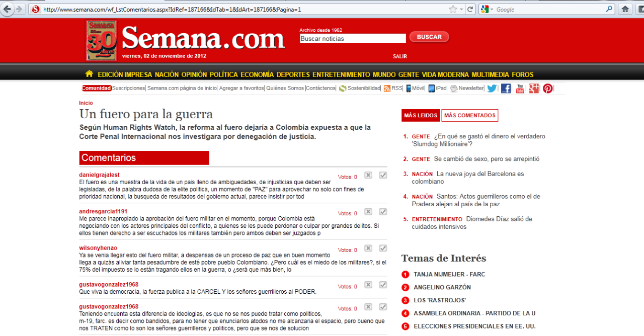 "En el fondo este cruce de cables demuestra que es hora de que el presidente Santos y la Unidad Nacional le planteen a la opinión y a la sociedad cuál va a ser la negociación con los militares si es que se abre la posibilidad de la paz en Colombia. Eso sería lo más honesto con el país en vez de empezar a hacerles concesiones por el patio de atrá".